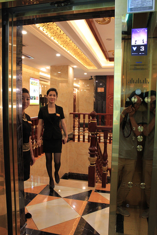 有道是“好馬配好鞍”。奧瑪斯電梯,素以高標準部件配置, 高品質的運行舒適感,完美的售后服務來贏得客戶的青睞。現安裝在該店內的800KG豪華型客梯為公司2015年款, 該產品設計上采用全鈦金蝕刻不銹鋼轎廂與廳轎門結構, 轎內廳外全配有彩色液晶顯示屏,與該店的整體裝璜風格相得益彰,完美匹配,更進一步突顯該店的“高大上”風范。我們在與該店老板丁總的交談中得知,丁總對該電梯的整體裝璜與運行品質是倍加贊賞的。